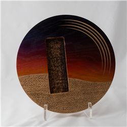 Artist: Joe Fleming. Turned Plate. Oak, Carving, Paint and Burning.